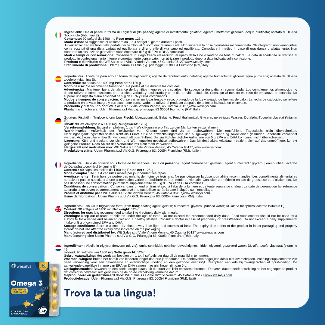 Omega 3 Wesalys è un integratore ad alta biodisponibilità, ottenuto da olio di pesce in forma trigliceride e certificato per purezza e qualità. Ricco di EPA e DHA, favorisce la funzione cardiaca, sostiene cervello e vista e contribuisce a mantenere equilibrati i livelli di trigliceridi. La certificazione IFOS garantisce sicurezza, freschezza e massima concentrazione attiva, rendendolo la scelta ideale per chi cerca un omega 3 puro, efficace e sicuro.